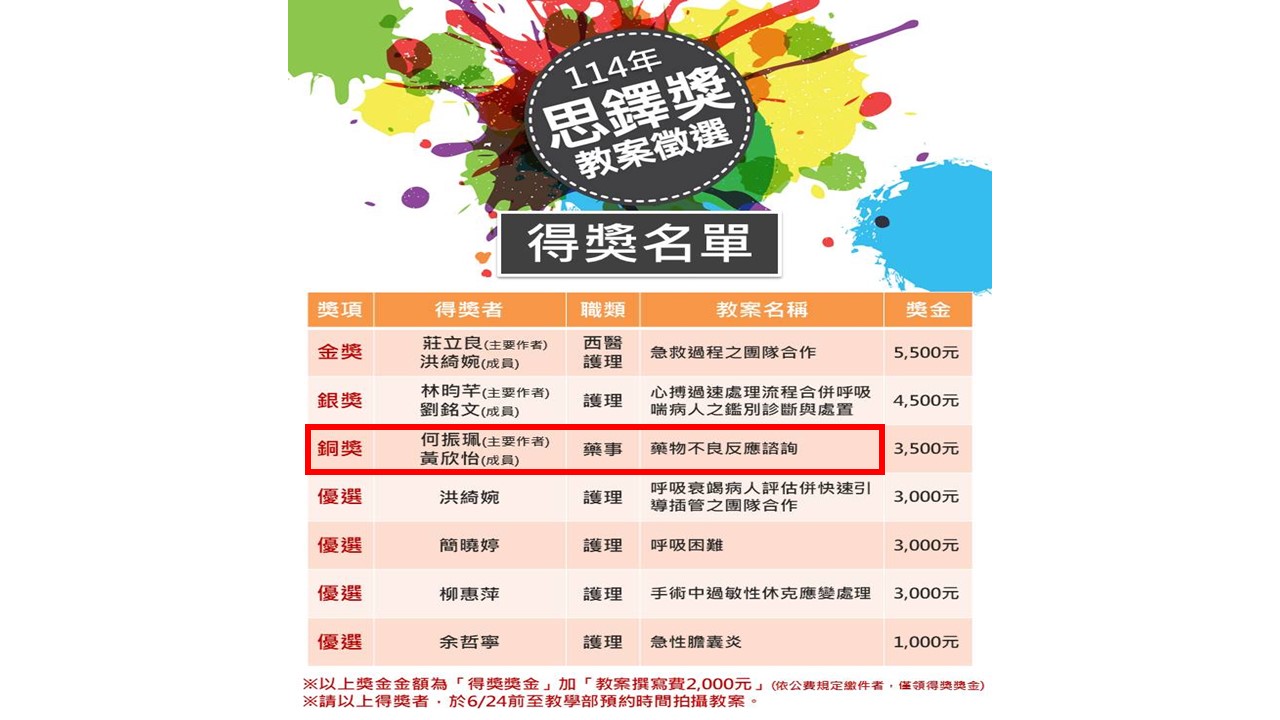 本部 何振珮、黃欣怡 藥師 榮獲 銅獎