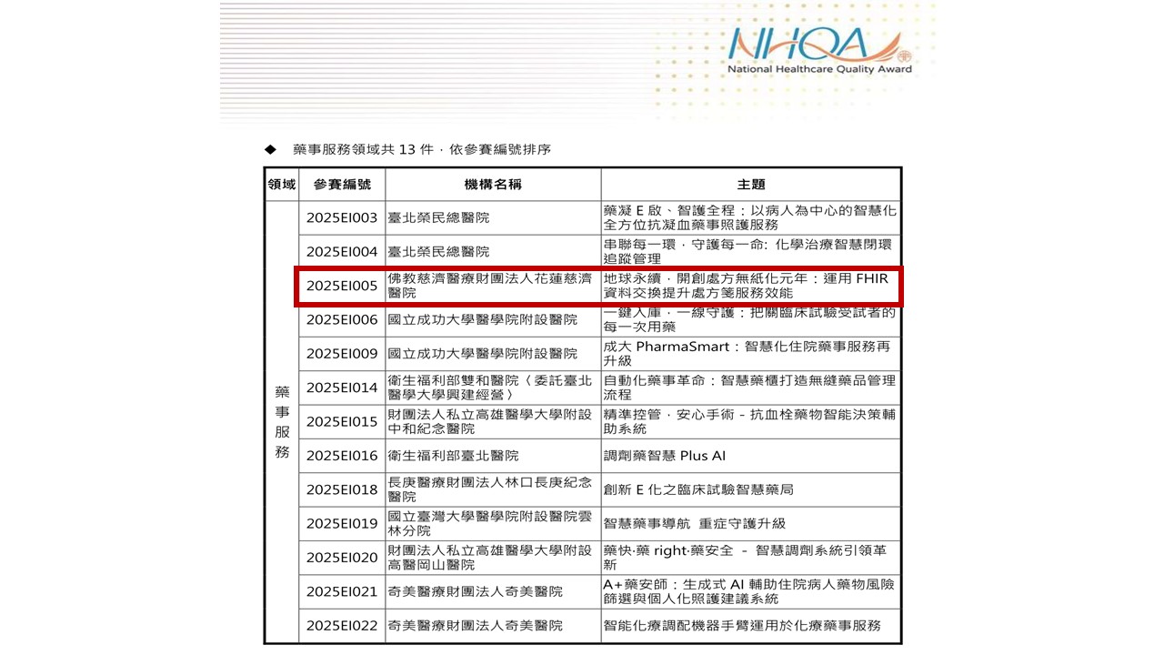 本部 榮獲 2025年 (第二十六屆)   NHQA國家醫療品質獎【智慧醫療類】