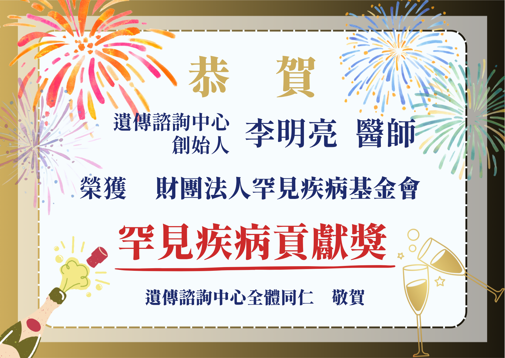 【恭賀】李明亮醫師、朱紹盈醫師榮獲財團法人罕見疾病基金會罕見疾病貢獻獎及服務獎!
