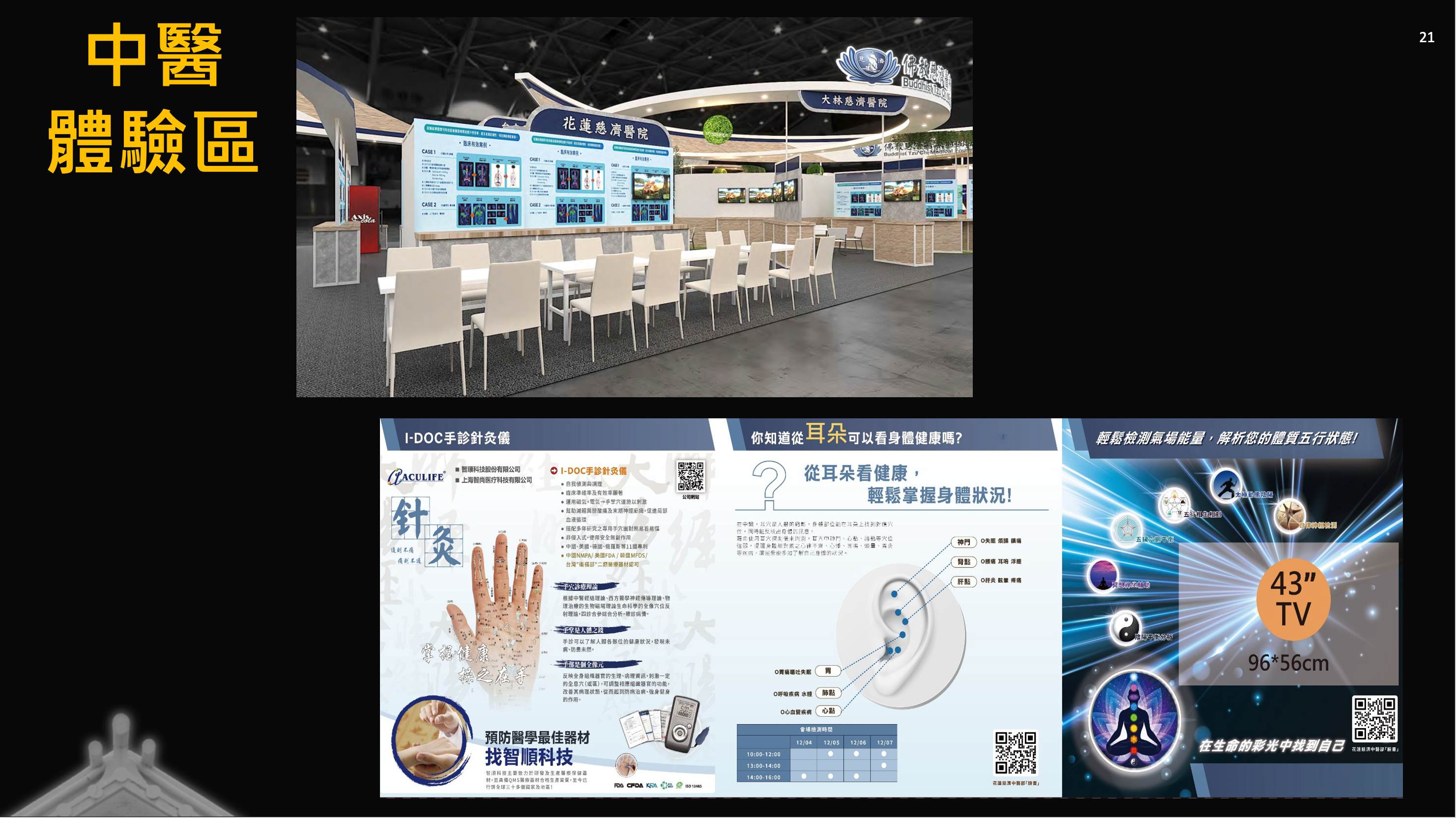 歡迎您到台北南港展覽館1館4樓-佛教慈濟醫療財團法人展位參觀,本院與國內外頂尖生技業、先進醫材業、智慧醫療科技業、知名飯店業、學研機構等聯展並舉辦22場專家講座。現場並提供免費中醫耳穴檢測、氣場儀/手診儀檢測、AR及VR智能應用等體驗。