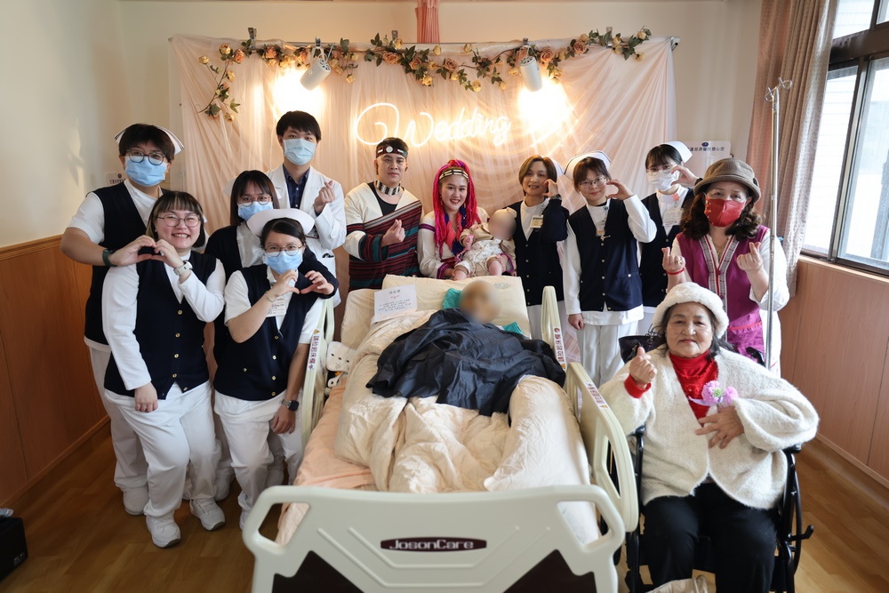 農曆春節連假前夕,花蓮慈濟醫院病房化身為溫馨的婚禮現場,在醫療團隊與家屬的努力下,為肝癌末期病人完成此生最深的心願–「親眼見證小女兒結婚」。粉色的婚禮佈置、盛開的花束與祝福影片,出自花蓮慈院第一整合後送病房護理團隊的巧思,讓原本安靜的病房在年節前夕,充滿愛與淚水。