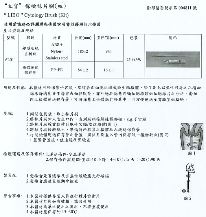 檢體採集:限使用專用採檢組收集的子宮頸檢體2 mL,採檢標準流程說明如圖