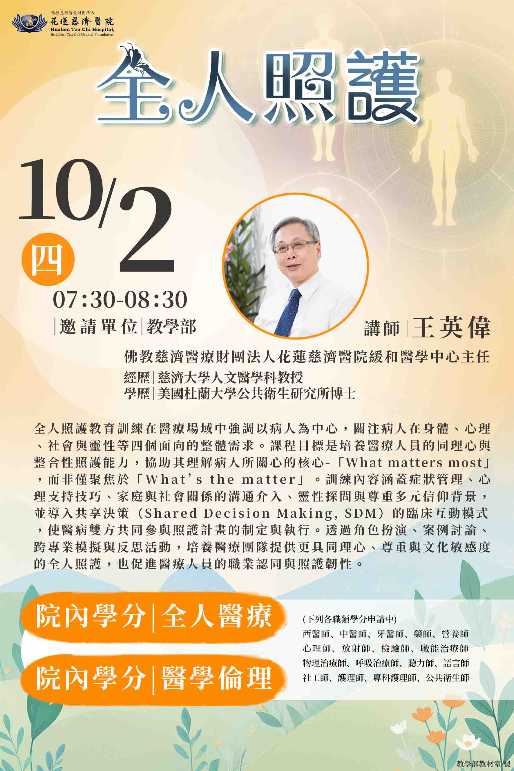 25 九,2025 最新消息 114.10.02 全院學術演講-全人照護課程-王英偉主任 上一篇文章: 114.10.09 全院學術演講-胃食道逆流新進展-雷尉毅醫師 上一頁 下一篇文章: 114年10月全院學術演講 下一頁